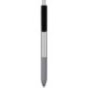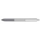 Retractable ballpoint stylus pen features a straight metallic silver barrel with a co-molded soft grip that goes all the way to the tip for comfortable writing. Also includes an extra large clip in your choice of color. Blue or black ink.