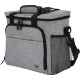 Features include 24 can main compartment capacity with a zippered wide opening top, a leak-resistant heat-sealed liner, a front zipper pocket, front slash pocket, 1 mesh side pocket, padded hook and loop secured handles and an adjustable, removable shoulder strap. Constructed from eco-friendly 300 denier two-tone rPET Polyester and 600 denier rPET Polyester, with 4mm PE foam and PEVA lining.