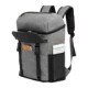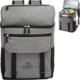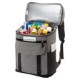Backpack cooler has an 18-can capacity zippered main compartment with extra thick heat sealed PEVA lining and insulation foam. Part of the eco Lifestyle Collection, the main fabric is made from recycled water bottles. It also features two side mesh pockets, a bottle opener, one large zippered pocket and one open pocket with flap cover on the front to carry your utensils or dry goods. The front side buckle straps can hold your beach mat or picnic blanket and the top zippered insulated compartment can hold your easy access snacks. Carry it using the padded adjustable backpack straps or the top carry handle. 300 denier Poly, RPET.