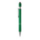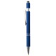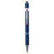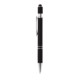 Plunger action pen includes a responsive capacitive stylus on top and a chrome ferrule and clip. Comforting soft touch feels great in the hand. Relieve stress with the spin top. Medium point black high-quality Glide-Write™ ink. Individually polybagged, velour sleeve.