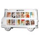 Aluminum metal frame in the shape of a school bus holds twelve 1-1/4" x 1-3/4" photos. Great for schools or teachers!