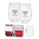 Two shatterproof, dishwasher safe wine glasses are made of food-safe BPA-free polymer. Your logo or brand message makes a bold statement on the front of these glasses. Come packaged in a 2 pack box.