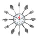 This eye-catching clock is perfect for kitchen or restaurant promotions! It's adorned with an array of spoons and forks around the face of the clock, which features a fork and knife as the hour and minute hand.