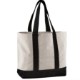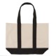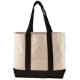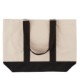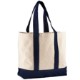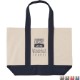 Tote includes a large main compartment, matching color accents handles and bottom of tote and 20" reinforced handles. Made of 10 oz. cotton canvas.