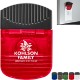 Clip has a spring loaded hinge and a magnet on the back side. Features a large rubber grip and a large imprint area.