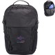 Backpack includes main compartment with padded laptop sleeve and internal zippered pocket, two front zippered pockets, stretch mesh side pockets, daisy chain and attachment webbing, a padded top handle, air mesh padded back panel, adjustable shoulder straps, sternum strap and trolley strap. Durable, water and abrasion resistant. Constructed of ripstop polyester with a water-repellent finish.
