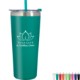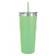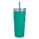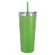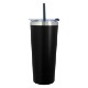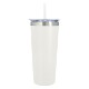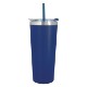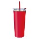 Double-wall construction allows for maximum temperature retention. Stainless steel outer and inner liner, this 22 oz. tumbler comes with a snap-on, spill-resistant flip-top lid with a straw hole and a matching 9 1/2" straw. Non-slip bottom. BPA free.